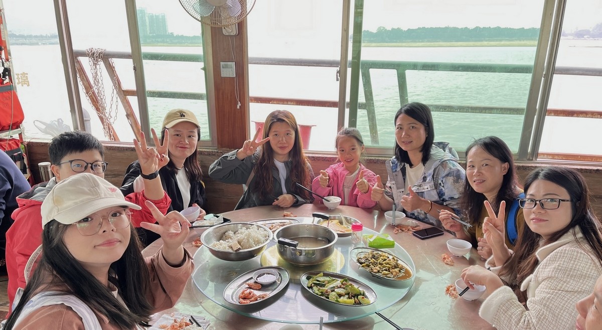 中午 ,集团成员们来到清远母亲河小北江 ,游船泛舟赏美景。