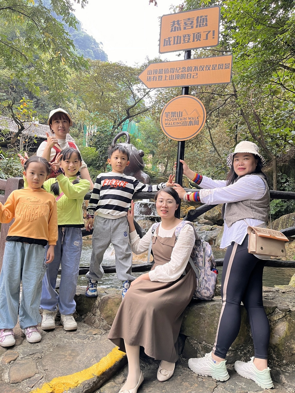 经过短暂的休息,大家来到风景如画的笔架山 ,拾阶而上,漫步郁郁山林 ,聆听潺潺溪流 ,呼吸新鲜空气。